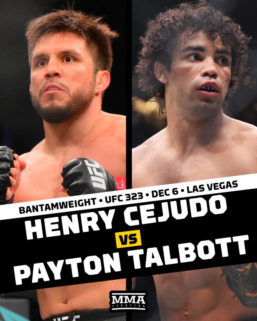 Mint most kiderült, december 6-án visszatér az Octagonba. A UFC továbbra is azt a taktikát viszi tovább, hogy a kiöregedő félben lévő bunyósai dolgát nem könnyíti meg, épp ellenkezőleg: megnehezíti azt. Cejudoval sem kivételeznek: a korábbi dupla súlycsoportos UFC-bajnok a 10–1-es mérlegű Payton Talbottot kapta meg ellenfélnek – jelentette a bombahírt a világ vezető MMA szaklapja, az MMAFighting.