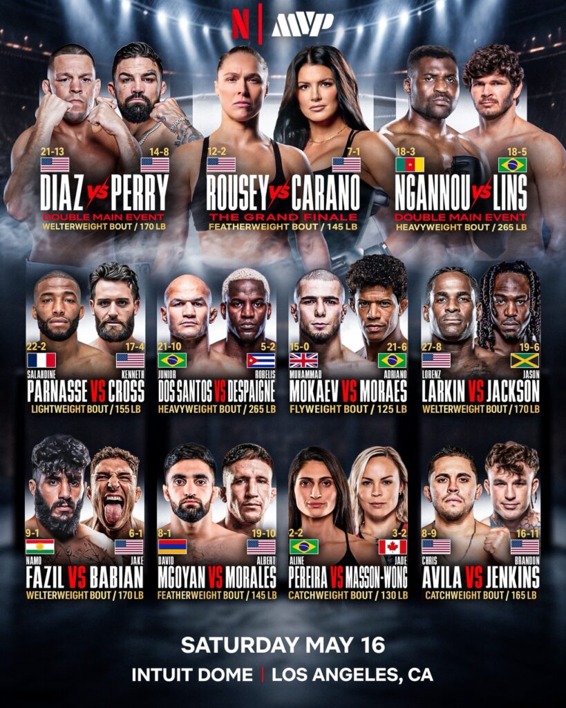 „‘A harcművészetek történetének legjobb kártyája’, hallottad már?” – mondta Harrison. „[Rousey] azt mondta, ez minden idők legjobb női meccse. Hány éves is Gina?” – tette hozzá Harrison. „17 éve nem bunyózott. Ugyan már.”