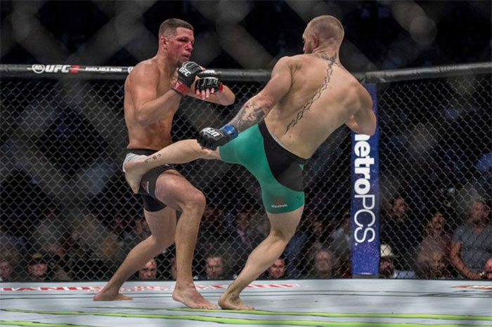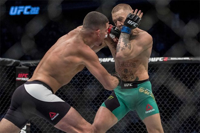 Az ötödik menetet követően a pontozók többségi döntéssel Conort hozták ki győztesen. Nate úgy tűnt, hogy csalódott, de gyors beletörődéssel jelezte, hogy ennél a szervezetnél szerinte ő nem nyerhet egy Conor forma ellen. Azt is elmondta, hogy borda és térdsérüléssel küszködve szarabbra sikerült a felkészülése, mint az első meccsük előtti 11 napos beugrós történet. McGregor a Király visszatéréséről beszélt, méltatta Diazt, egy mocskos kemény harcosról beszélt, aki sosem adja fel, mindegy, hogy mit csinálsz ellene, ő csak jön előre. Hogy Aldot az őrületbe kergesse, trilógiát ajánlott Diaz-nak, ezúttal azonban már könnyűsúlyban. Nate persze nyomban rábólintott a lehetőségre.