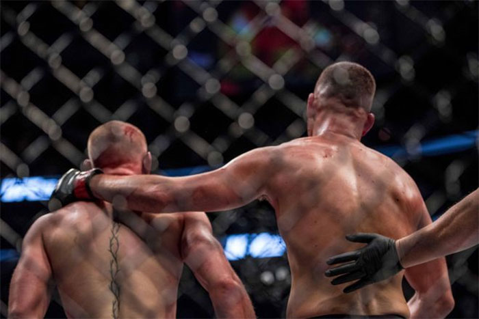 Aztán a második menet közepén jött a deja vu. Conor tankja ismét kiürült. Vagy legalábbis mozgása lassult, ütéseit nem úgy húzta, Nate pedig megindult. Belemászott Conor arcába és küldte a kombinációit, a ketrec falánál préselt. Ez volt a pont, mikor Conor-nak a pokolból vissza kellett indulnia, ugyanis a harmadikban darabjaira esett szinte, voltak olyan pillanatok, mikor úgy éreztem, hogy álló KO közelében van. A negyedik menet azonban McGregor eddigi UFC karrierjének csúcspontja. Felejtsük el az Aldo elleni tündöklését, itt saját magát, az említett démonjait kellett legyőznie, erre pedig képes volt. Tudta tartani nyomás alatt is a taktikát, minden erejét beosztotta, és visszahozta magát a meccsbe, hogy az ötödikre ismét némi lélektani előnnyel jöjjön ki. Az utolsó menetben aztán a túlélés volt a lényeg, mély lélegzetek közepette az óra sűrű csekkolása és gyakori kihátrálás a közelharcokból, a clinch veszélyéből. Ha a régi Conort vártuk, akkor a fújjolás és Nate gúnyos beintésének éltetése illik a képbe, sokan a Menekülő Királyról írnak. Ha viszont úgy tekintünk ezekre a pillanatokra, mint Conor fegyelmezett, régi énjét levetkőzni kész momentumra, akkor azt csinálta az ír, amit már az első meccsén is tennie kellett volna egy közel 20 fonttal nehezebb srác ellen.