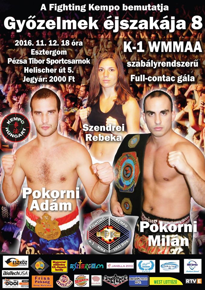 A Győzelmek Éjszakája 8-at november 12-én, szombaton rendezi a Fighting Kempo. A gála 18:00-kor kezdődik a Városi Sportcsarnokban, jegyek a helyszínen vásárolhatók. Bővebb információk a szervezők Facebook-oldalán és a gála Fb-eseményében.