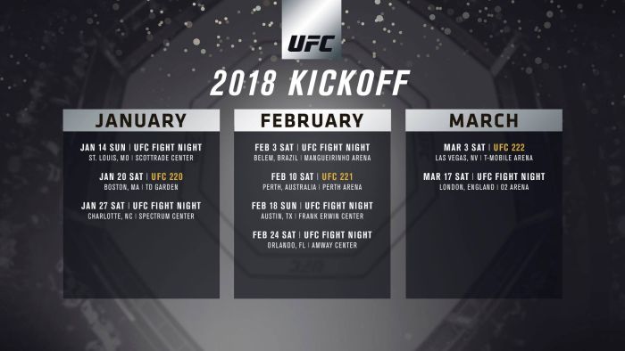 A hivatalos UFC rangsor ugyan még nem volt frissítve, de gyanítható, hogy az első tizenhat helyezettből jelen pillanatban 9-nek bejelentett meccse van. Ebből mindegyik le is megy az év végéig egy kivétellel.